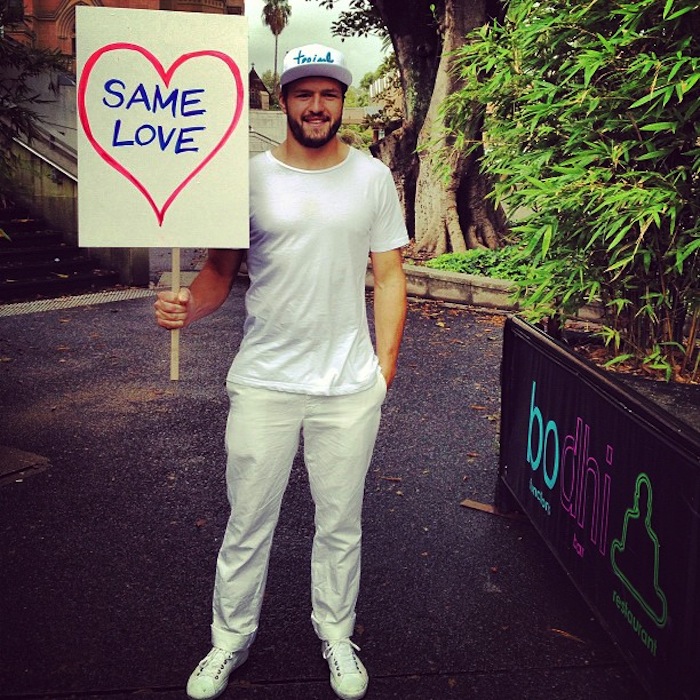 After taking part in Sydney’s Mardi Gras Pride parade in 2013 making a stand for marriage equality in Australia, he has spoken out for the Out On the Fields campaign and to promote the Bingham Cup (the world’s biggest LGBT rugby tournament), taking place in Sydney later this month.